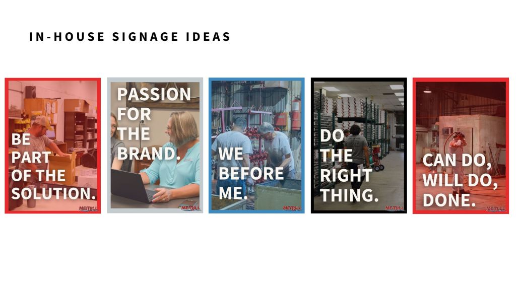 Beyond digital content, I created branded signage and marketing materials for Merrill’s internal spaces, contributing to a cohesive in-house brand experience for both employees and visitors.