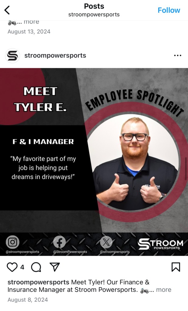 Whether it was funny TikToks, product spotlights, or just everyday dealership moments, these videos helped bring Stroom Powersports’ brand to life on social media.